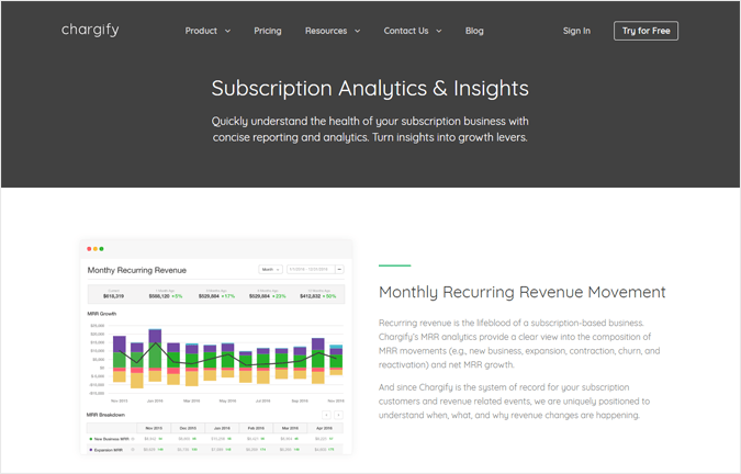 In order to increase the overall growth of your company, you need a detailed analysis of your payment metrics (MRR, ARPU, etc.), which is what this software is known for.