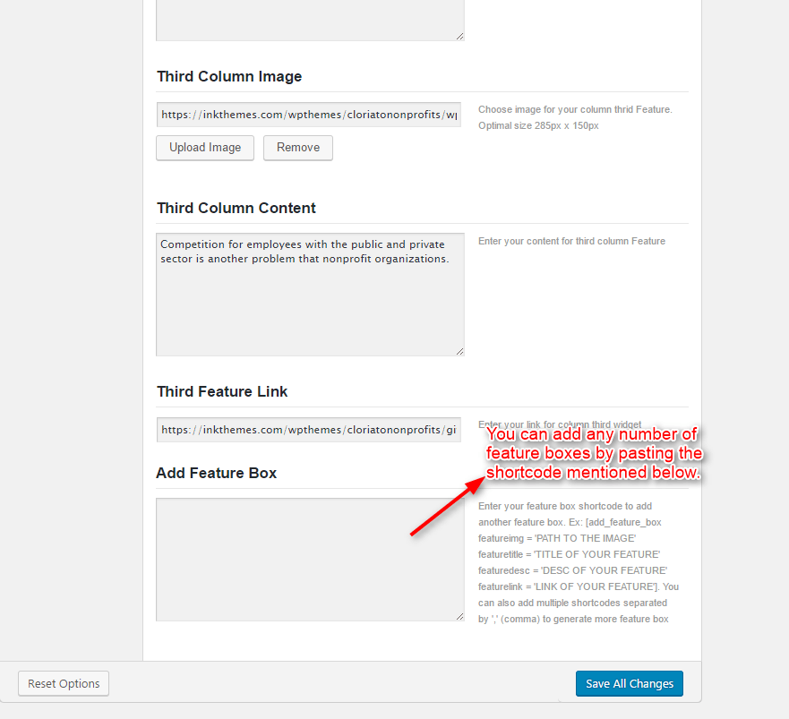 You can also add multiple feature boxes in homepage by just adding the shortcode given below: