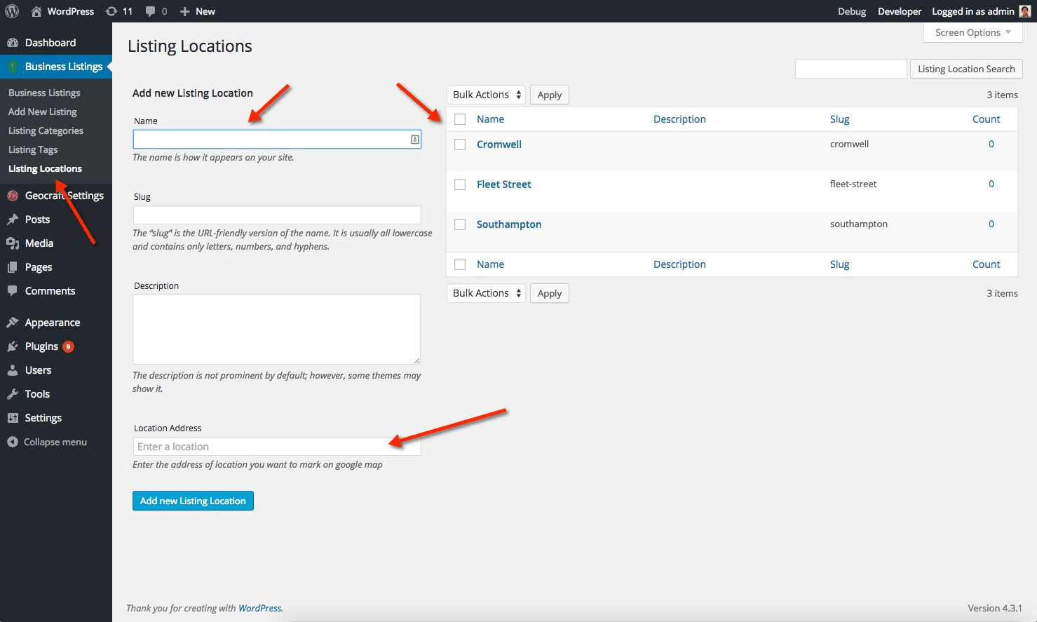 Steps for installing the GeoCraft WordPress Directory Listing Theme