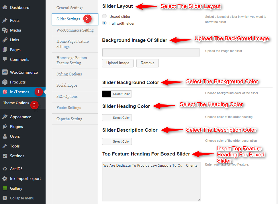 Slider image and slider link can be easily inserted with the help of the options given below.