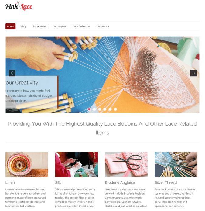 As a lace supplier, patron, lace maker, tailor, bobbin lace manufacturer, it is very important to implement a breathtaking website for your business. PinkLace WordPress theme is a quick solution for creating an astonishing lace business website which is readily available, user-friendly & easy to set up.