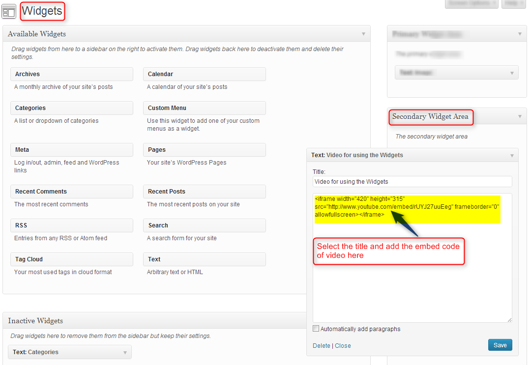 1. Drag and drop the text box in the Primary widget area.