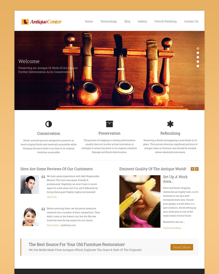 AntiqueCenter WordPress theme is nicely crafted for master craftsman, art refurbishing firm, antique items refinishing, repairing, restoration and touchup business.