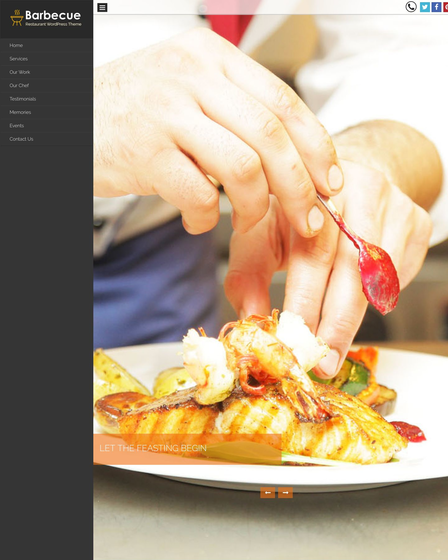 Barbecue WordPress theme has excellent header section incorporated with a full-width slider, text over slider image, social icon and call button. The full-width slider allows you to insert attractive images of your restaurant and let you engage your visitors.