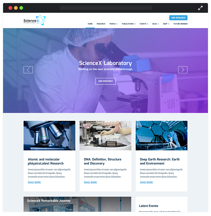 ScienceX is a feature-rich, responsive, and multipurpose education WordPress theme for professors and researchers’ academic websites. Are you looking for expertise that fulfills all the professors’ or researcher’s requirements for making personalized websites? Well then, ScienceX has everything you will ever need.